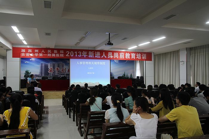 为使新入职员工在入职前对医院有一个全方位的了解,认识并认同医院文化,理解并接受医院的行为规范,明确自己的岗位职责,尽快进入岗位角色。7月8日,我院在大会议室对2013年度新进人员进行岗前教育培训,院长周明欢出席并讲话。
