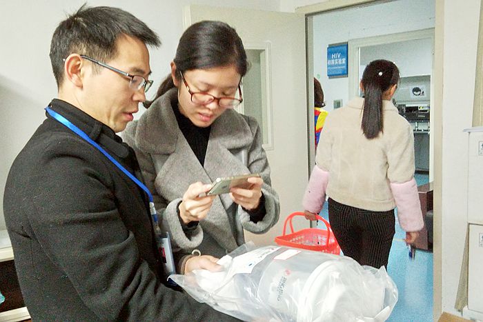 设备科试剂采购员同输血科负责人核对试剂购进与使用台账