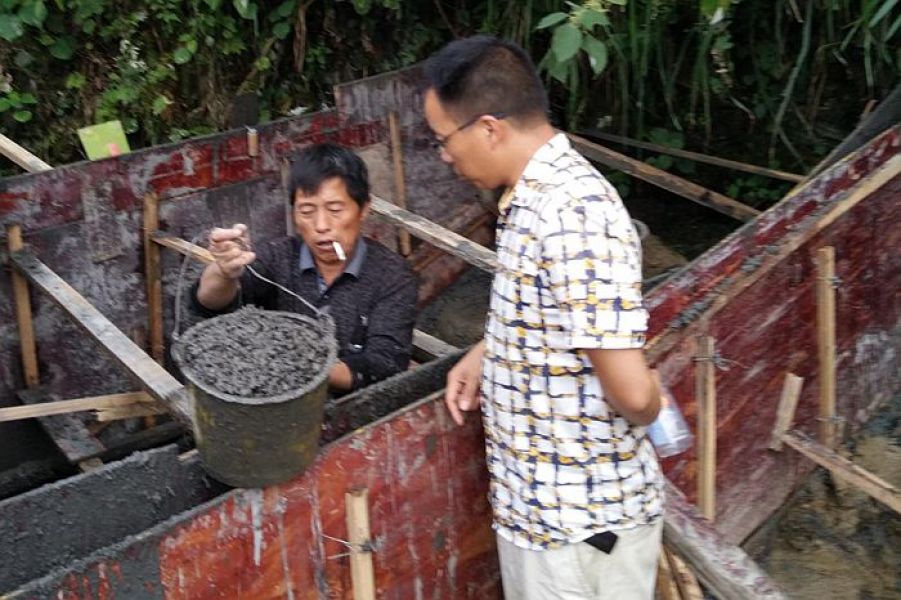施工人员正在修建蓄水池