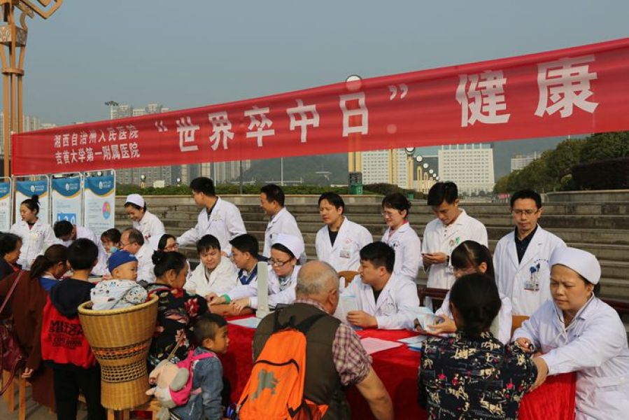 10月29日是“世界卒中日”,脑卒中俗称中风,以其“高发病率、高死亡率、高致残率、高复发率”的特点,严重威胁居民的身心健康,当天上午,神经内科和康复科的23名医护人员在世纪广场开展义诊咨询活动,集中宣传脑卒中防治知识、倡导健康生活方式,呼吁脑卒中的早防、早诊、早治。