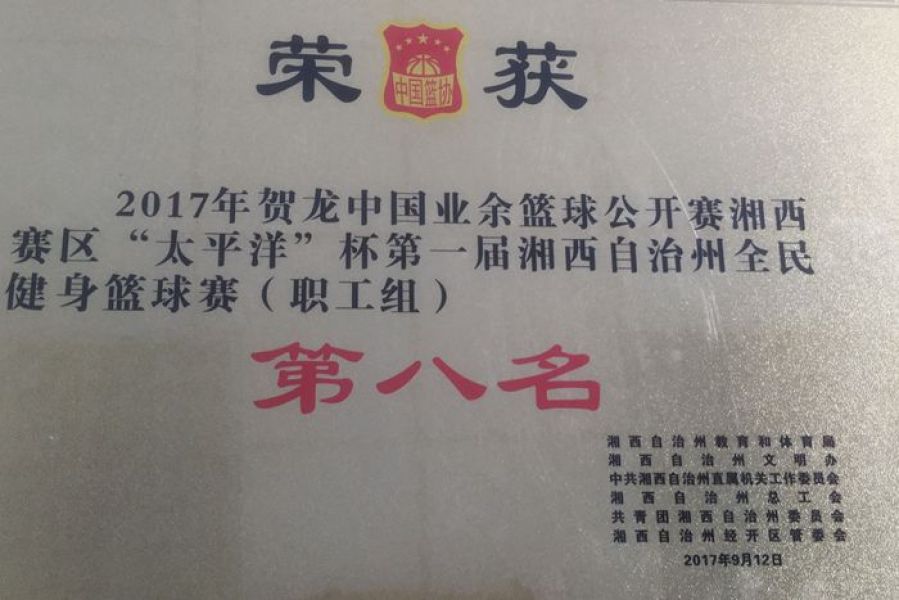 为丰富职工的文体娱乐生活,充分发挥职工团队协作精神,促进医院精神文明工作的创建。8月8日,院工会积极组队参加由州教体局、州总工会等单位举办的迎州庆2017年贺龙中国业余篮球公开赛“太平洋”杯首届湘西州全民健身职工篮球赛。经过为期一个月共计十一场比赛的激烈角逐,最终我院篮球队获得第八名的好成绩。