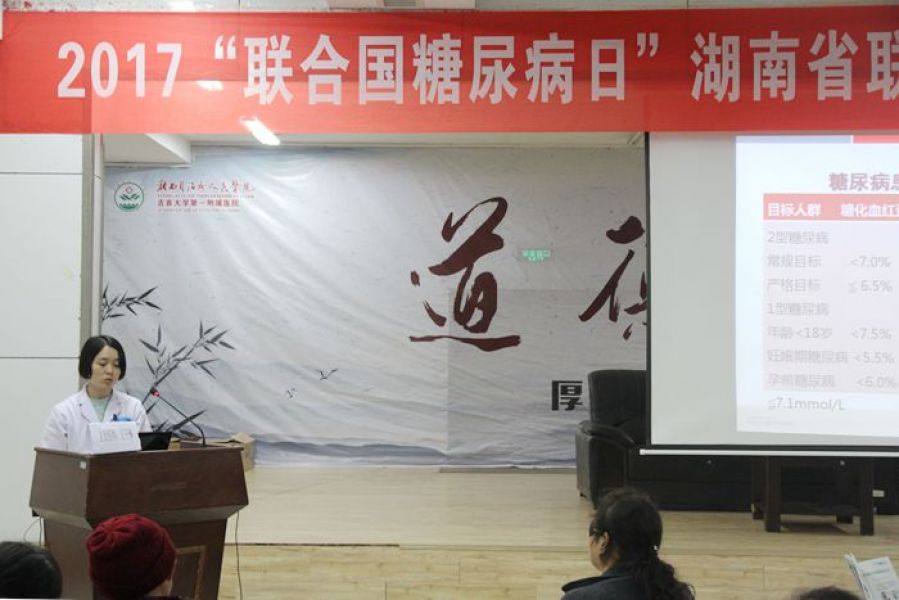 在第十一个联合国糖尿病日到来之际,为引起公众对糖尿病的警觉,关注女性糖尿病早期筛查,加强糖尿病防治宣传,11月10日下午,内分泌科在院大会议室举办了主题为“女性与糖尿病——我们拥有健康未来的权利”的大型糖尿病宣教活动。