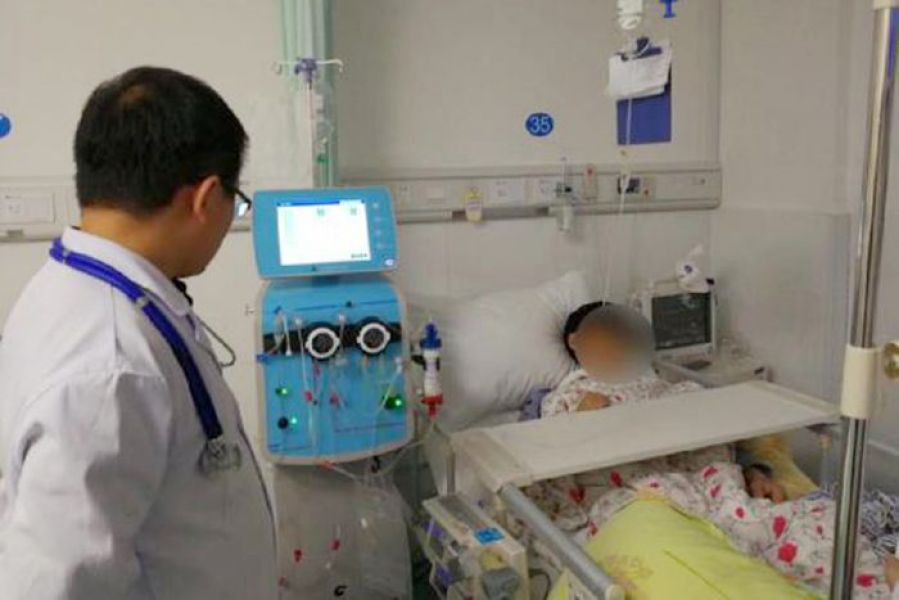 心内二科医生正在为患者实施血液超滤技术治疗心力衰竭