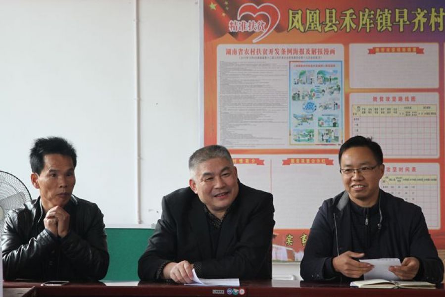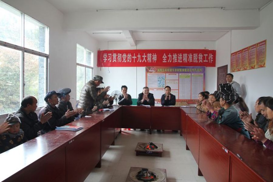 为学习贯彻党的十九大精神,全力推进精准脱贫工作,11月23日,院领导彭剑涛、贾小卷、莫莉萍、罗勇、江宏冰带领百余名党员干部来到定点帮扶村——凤凰县禾库镇早齐村、新湾村,为村民宣讲党的十九大精神,把十九大的好消息传给大山里的党员群众,将党的好政策送到所有乡亲们的心坎里。