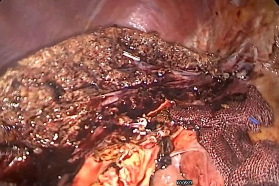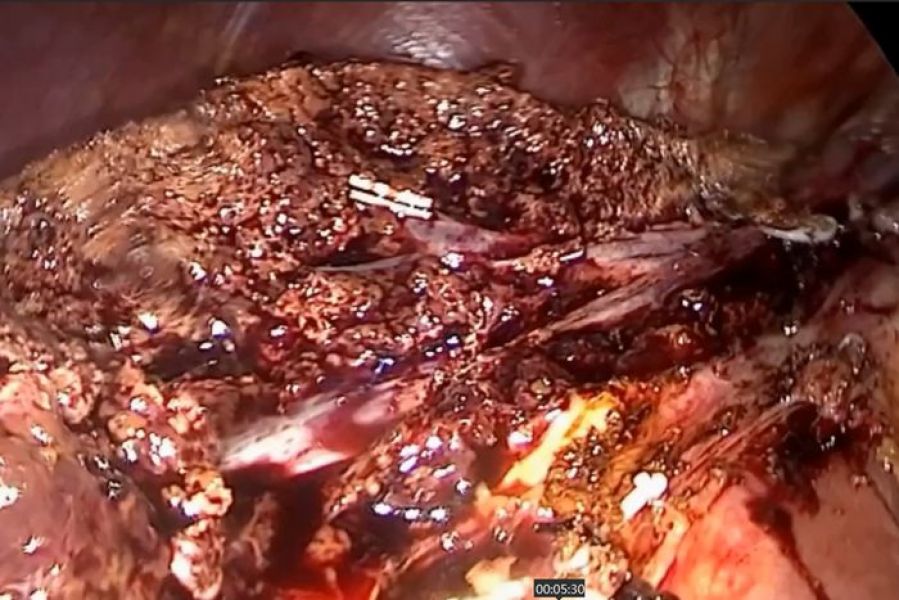 完成术前各项准备,肝胆外科于10月26日在全麻下实施全腹腔镜头侧入路法左半肝切除+胆囊切除+胆道探查+T管引流手术,手术顺利。术中患者生命体征平稳,术中出血量不超过60ml,未输血,术后安返回病房。