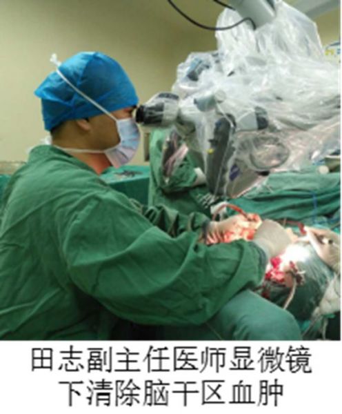 “脑干是人的生命中枢,管理调节体温、呼吸、心跳、血压等基本生命体征,是大脑的‘司令部’。脑干出血是神经系统的危急重症,病死率极高,是神经外科最凶险、预后最差的疾病。”黄纯海主任表示,脑干结构约拇指头大小,但功能非常重要,急性出血后血肿对脑干组织的压迫,出现脑干功能减退,各种治疗方案的效果均较差。随着显微神经外科的发展,一方面显微器械的革新,另一方面神经外科医生对脑干周围组织结构认识的提高以及理念的不断更新,使我们对脑干区域手术的认识也在不断进步,脑干手术已不再是“禁区”。但面对脑干大量出血的患者,只有手术治疗才有一线生机。该患者经过多学科通力协作,积极显微外科治疗后,患者生命得以延续,是为医学奇迹。