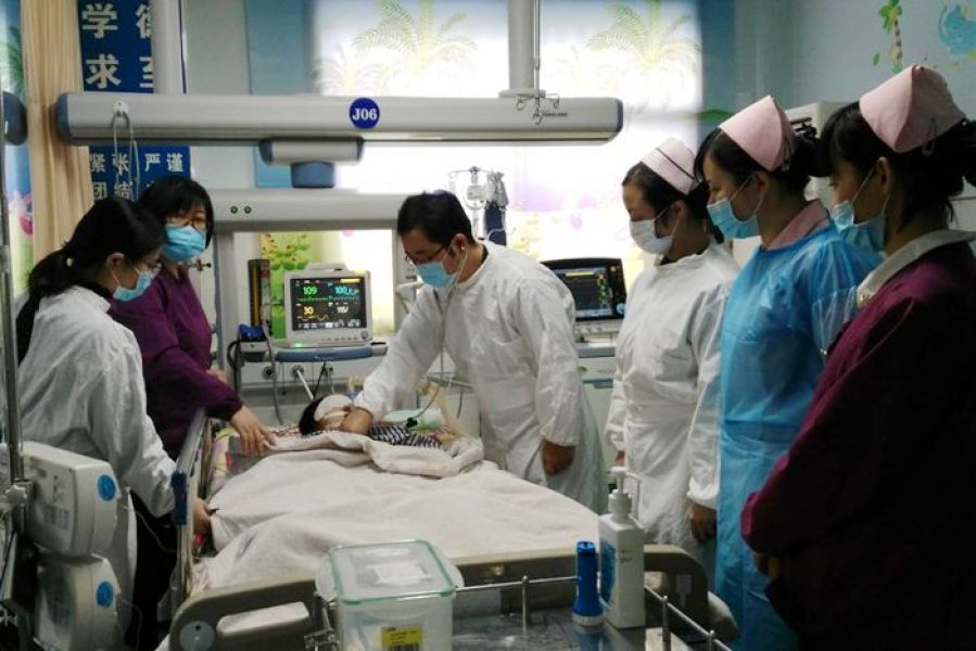 事情还得从10月29日说起,那是一个周日的下午,虽是周末,但儿一科的医护人员仍就紧张而有序地忙碌着。一辆救护车从重庆市秀山县疾驰而来,车上载着12岁的患儿李某某,来院时已是神志模糊,呼吸困难,面色发绀,血压不升。来院后立即急症收入儿一科PICU。儿一科立即启动了应急预案,崔磊、胡立立、刘翠医师为接诊医师,给予评估后考虑患儿呼吸衰竭,准备气管插管,PICU万桦护士长等4名护士共同参与抢救。同时将患儿病情向来州人民医院儿科挂职的二线值班医师济南市儿童医院的张伟副主任汇报,张伟副主任立即赶到科室,为患儿做了全面评估,考虑呼吸衰竭,严重脓毒症,失代偿性休克。时间就是生命,立即给予气管插管,插管时自声门喷出大量鲜血,提示肺出血,插管成功后立即连接呼吸机,参数设置给予高PEEP,小潮气量,压制患儿肺出血,改善氧合,同时尽可能减少肺损伤。患儿失代偿性休克,立即给予扩容,去甲肾上腺素升压,多巴酚丁胺改善循环。严重脓毒症,1小时内给予利奈唑胺、美罗培南重拳猛击控制感染,同时给予小剂量甲泼尼龙抗炎,酚磺乙胺止血,维生素K1促凝血因子生成,低分子肝素抗凝,并积极加强对症支持治疗及免疫支持治疗。经过一系列抢救,患儿氧合由来诊时的30%升至95%,数小时后患儿的血压也逐渐恢复正常。急诊床边胸片提示:肺出血;心电图示:窦性心动过速,ST-T改变,QT间期延长;急诊肌钙蛋白:2.68 ng/ml;病程中肌酸激酶同工酶达240U/L,肌酐1246umol/L,尿素氮17mmol/L;纤维蛋白原最低1.225g/l,D二聚体最高9.88mg/l,FDP最高19.5ug/ml,TT最高26S;血小板低至23×109/L;离子钙低至0.68mmol/l。儿一科主任石敏主任、何万军副主任与张伟副主任根据病史、症状、体征及相关检查结果,排除了鼠药中毒及肠道病毒感染,正确及时地做出诊断,张伟副主任更是在第一线每天观察患儿病情变化,及时给予正确处理。