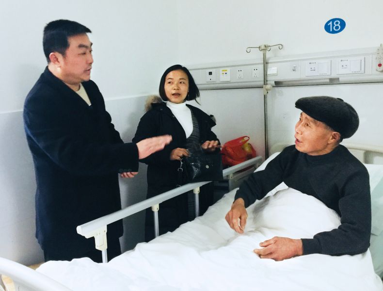 2018年2月27日,保卫科党小组成员一行5人,来到呼吸一科看望扶贫帮扶对象凤凰县新湾村吴宋清老人,给他送上慰问品,了解治疗情况,鼓励他安心养病,积极配合治疗,争取早日康复。