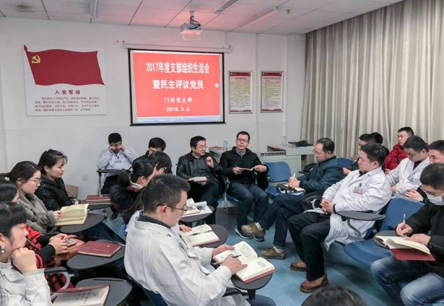 3月6日,门诊党支部召开党员大会,42名党员一起过支部组织生活会和进行2017年度民主评议党员工作。
