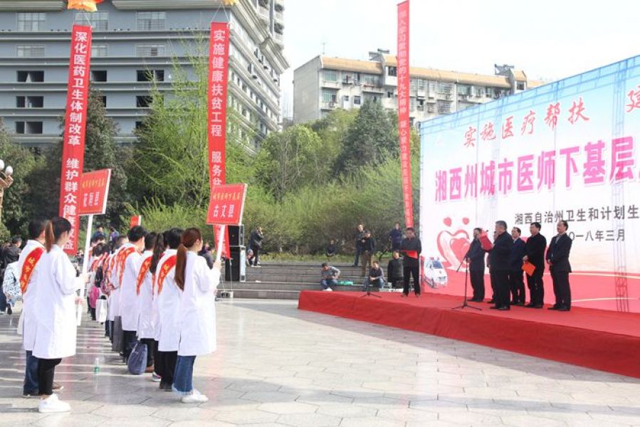 3月26日,湘西州城市医师下基层服务活动在吉首市团结广场举行启动仪式。现场共有州直医疗机构的59名医师下派到基层,到州内43个乡镇中心卫生院和16个县级医院坐诊,服务期限为半年。
