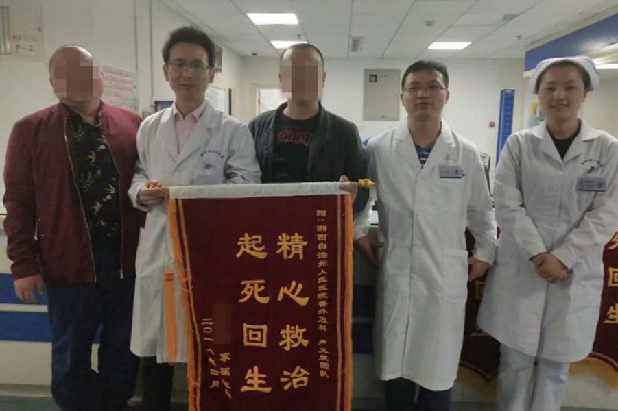 初见的曙光再次因阴霾而遮蔽。时间已经临近春节,在这紧张的时刻,全力救治老人成了普五科、泌尿外科以及重症监护室医护人员最重要的工作和最大的愿望。全院医护人员积极去血站献血,在充分血液的保证下,再次进行剖腹止血,创面填塞明胶海绵、喷洒医用冻干止血凝胶,积极输注凝血因子,纠正患者的凝血功能异常。令人欣慰的是,多次剖腹探查发现老人肠管吻合术后一直没有任何裂开的迹象,而且肠管管腔已经通畅,可以通过肠道内容物,这就意味着老人术后可以积极开展至关重要的肠内营养。为了更有利于老人康复,在春节期间,普五科人员还请来湖南省人民医院大普外科主任陈超武教授会诊,指导用药和术后康复。