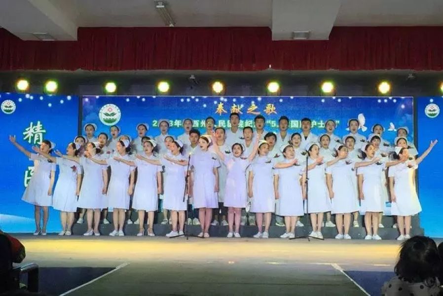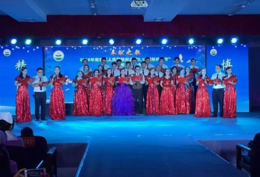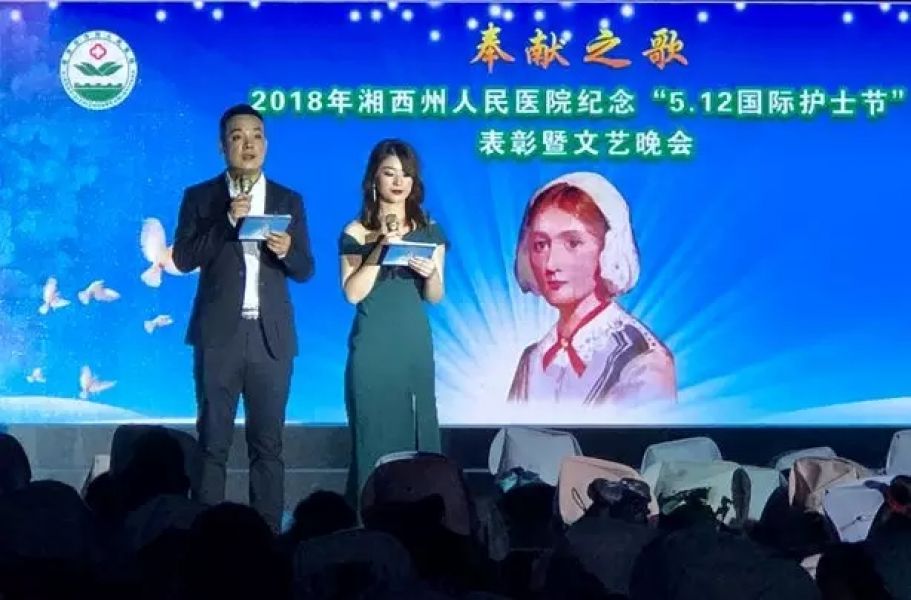 今年5月12日是第107个国际护士节。11日晚上,湘西自治州人民医院举行了“奉献之歌”纪念“5.12国际护士节”表彰暨文艺晚会。护理人员代表欢聚一堂,通过载歌载舞的形式欢庆自己的节日,表达了她(他)们对工作的热爱。