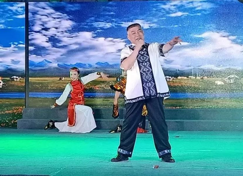 党委书记彭剑涛一曲《父亲的草原母亲的河》苍劲有力,深沉豪迈,唱出了独特的草原气质。