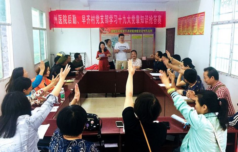 党课结束后,进行了十九大报告、党章知识抢答赛。整个赛程紧紧围绕党的十九大报告、修改后的《党章》等内容展开,比赛气氛热烈,紧张活跃,大家争先恐后举手抢答,个个对答如流;特别是早齐村的党员们,积极参与抢答,会场不时响起阵阵掌声、喝彩声。抢答赛完毕,大家又赶到了扶贫联系户的家中看望慰问,党员们跟联系户围坐一堂,冒着细雨聊起了家常,询问他们生产、生活中遇到的实际困难,就精准脱贫、异地搬迁等问题征求扶贫户意见,鼓励他们要树立信心,振奋精神,争取早日脱贫。