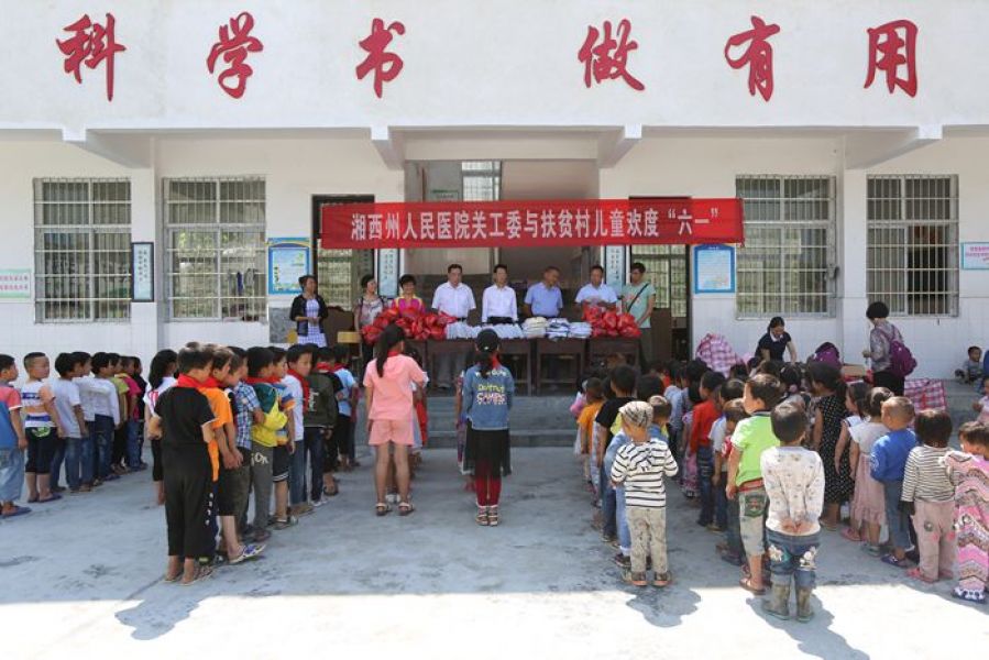 6月7日,院关工委一行八人来到凤凰县禾库镇早齐村小学,为孩子们送去节日的祝福。