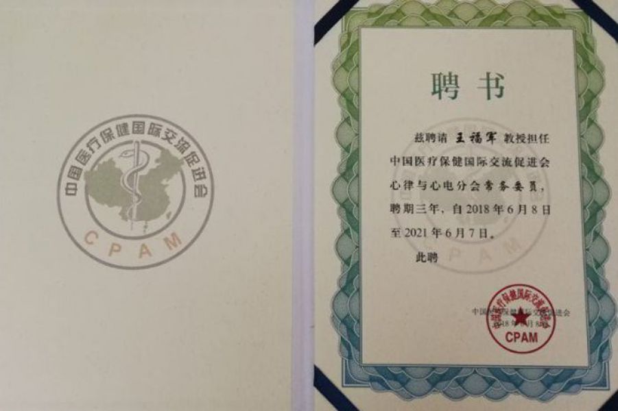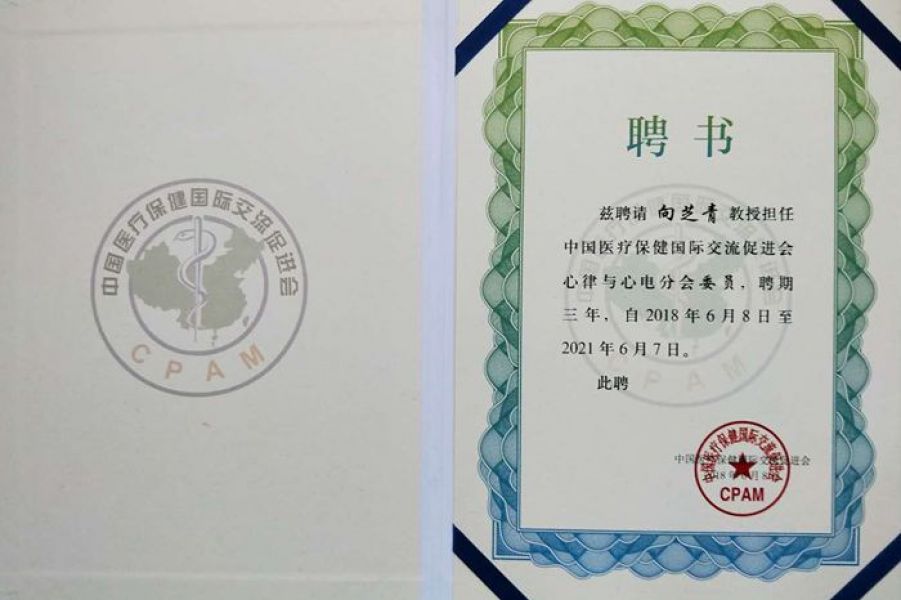 王福军向芝青当选中国医疗保健国际交流促进会心律与心电分会常务委员、委员