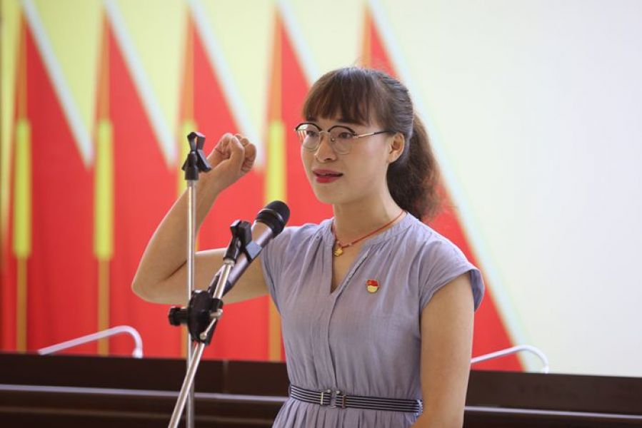 演讲比赛环节,从总支三个党支部中选拔12名选手参赛,选手们立足自己的岗位、专业,饱含对党的深清,对人民的热爱,对祖国的感恩,对职业的责任,声情并茂,用充满正能量的演讲,赢得现场同事们阵阵热烈的掌声。角逐到最后,来自儿科门急诊的护士蒋敏以《党的赞歌》获得本次演讲一等奖。
