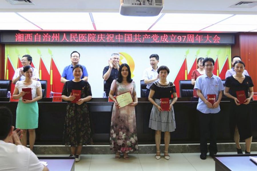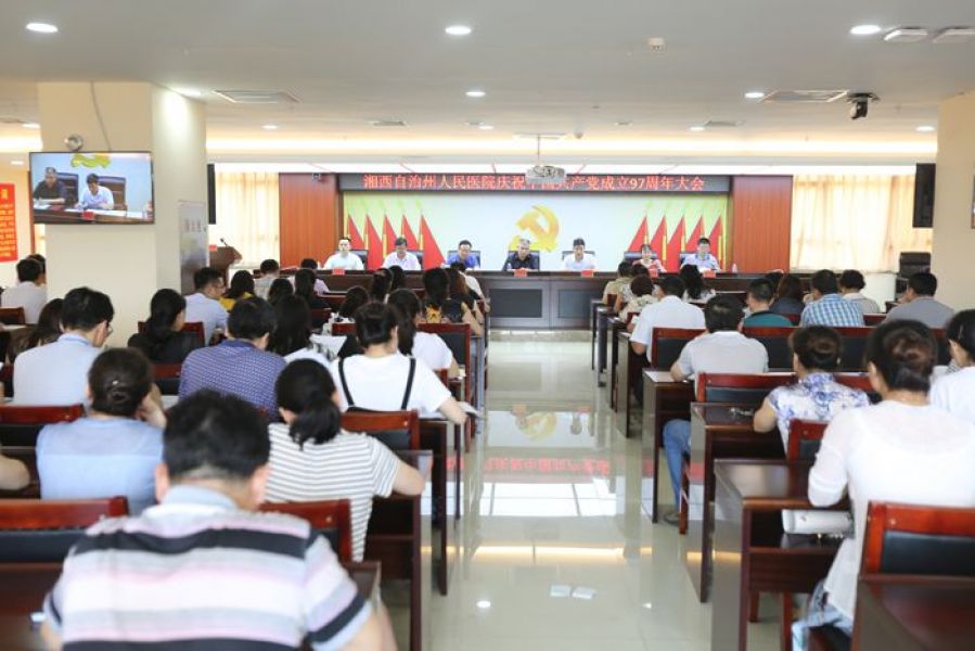 6月29日,我院召开庆祝中国共产党成立97周年大会,院党委书记彭剑涛为全体党员上了主题为《不忘初心、牢记使命,以新的思想和工作姿态,开启医院高质量发展的新征程》党课。院党委副书记、院长周明欢主持大会。院党委班子成员贾小卷、莫莉萍、田茂友、罗勇、向平、梁民勇及党员代表、入党积极分子、中层管理人员代表等参加了大会。