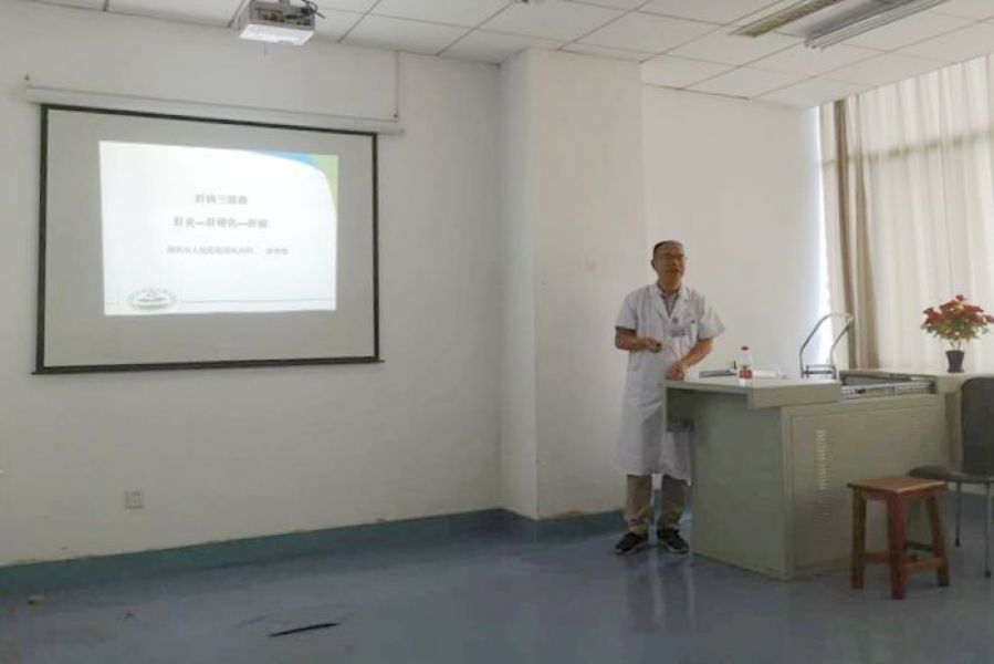 消化内科主任李学峰讲述了从肝炎到肝硬化,最终发展为肝癌的疾病演变过程及肝癌患者抗病毒治疗的重要性。