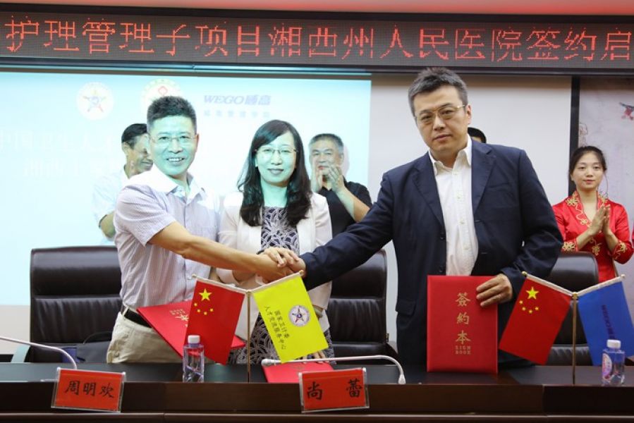 国家卫生健康委员会人才交流服务中心医药研究中心副主任尚蕾、院党委书记彭剑涛、院长周明欢、副院长罗勇、威高管理学院院长王充、山东威高集团华东销售公司湖南区经理宋修会等出席了签约仪式。