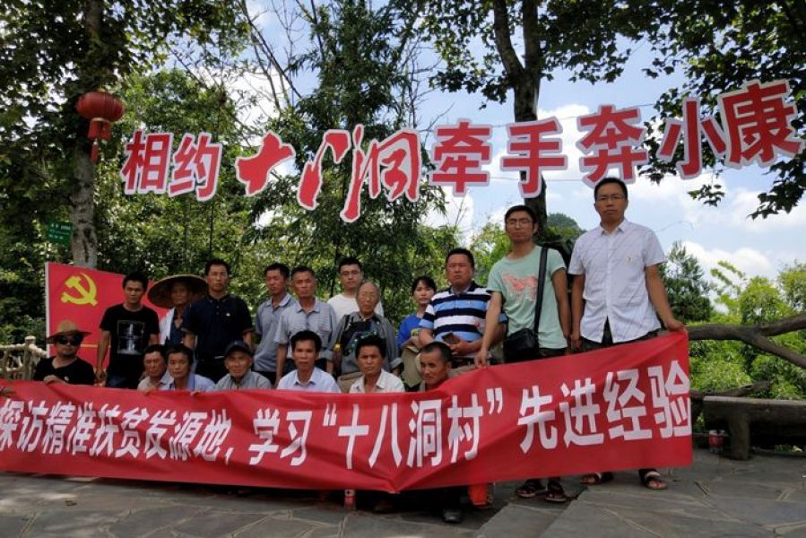 上午11时,早齐村全体党员来到十八洞村。在讲解员的带领下,走进施成富的家里,重温习近平总书记的嘱托,参观了“成富家厨房”和苗绣合作社厅展作品,认真学习十八洞精准扶贫模式,探寻可复制经验。并重温入党誓词,在党旗下接受心灵的净化和洗礼,牢记共产党员的政治责任和历史使命。学习参观过程中大家很认真,村里老党员龙兴才、吴求宜很激动,在十八洞村还即兴唱起了3首苗歌,以表达此行的收获、感想及对党的一片感激之情。