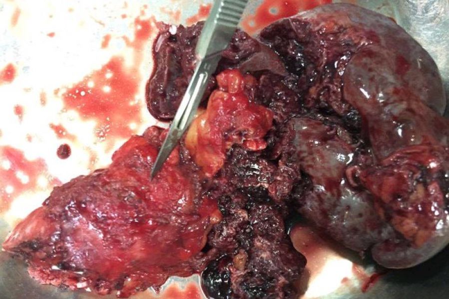 经过充分的术前准备,手术于7月18日进行,由肝胆外科主任宋新主任医师台下指导,肝胆外科二病区手术团队遵循目前最先进的根治性顺行模块化胰脾切除术(RAMPS)术式,从显露到配合,从分离到缝合,到计划性的en-block标本完整切除,都是按照术前精心设计的步骤顺利操作,历时5小时,出血不足50ml,最后成功为患者实施了3D腹腔镜下胰体尾癌联合脾脏切除术,切除7、8、9、10、11、12b淋巴结及左肾前筋膜。术后病理报告提示:胰腺体尾部低分化腺癌,肿瘤切除标本切缘阴性,淋巴结无转移。术后继续将加速康复理念应用于该患者,术后第一天拔出胃管,鼓励患者床上活动,肺功能锻炼;术后第二天拔出导尿管,开始下床活动。一周后复查胰腺CT提示病灶已完整切除,无出血及胰瘘等并发症发生,患者康复出院,目前回访无异常。