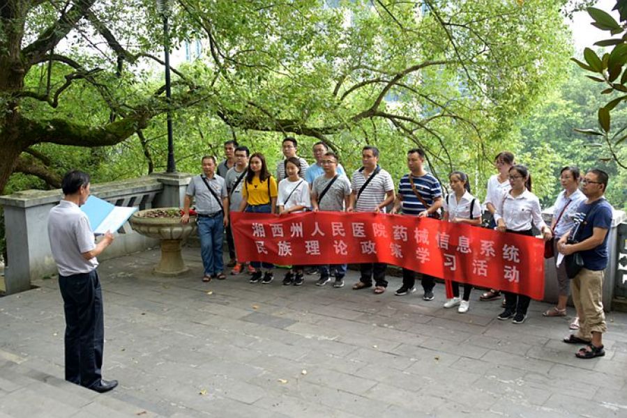 根据年初党建工作计划,8月24日,药械信息党支部组织党员开展“主题党日+红色教育”活动。参加活动的党员来到省爱国主义教育基地辰溪县胜利公园、湘西剿匪史料存列馆,并在烈士纪念堂前学习了我国民族政策的主要内容、湘西州创建全国民族团结进步示范州的“六个强化”内容以及习总书记关于民族团结有关指示。院党委委员、副院长罗勇全程参加了本次活动,并主持学习了民族政策相关内容。