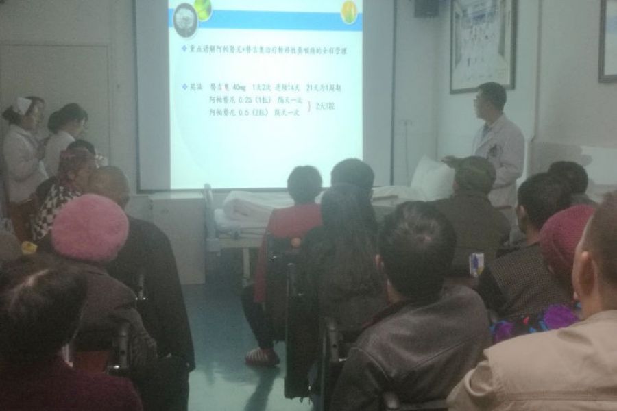 为指导鼻咽癌患者更加科学、规范地诊疗。11月1日,肿瘤一科主任向志碧主任医师、熊莉主任医生携肿瘤一科医护人员于科室示教室召开了一场温馨的鼻咽癌患者专题宣教座谈会。交流会涵盖诊疗、病友分享、现场咨询三个环节。