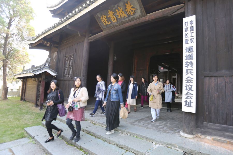 抵达了通道后,大家热情高涨,全体党员跟随讲解员的脚步,认真参观了通道会议旧址恭城书院、通道转兵纪念馆。84年前,面对敌人的疯狂围攻,中共中央负责人在恭城书院召开了紧急会议(“通道会议”),采纳了毛泽东同志“放弃原定方针,转兵西进贵州”的正确主张,甩开了敌军的围追堵截,在危急关头挽救了红军,拉开了红军长征历史性转折的序幕,为遵义会议召开奠定了思想和组织基础。通道转兵纪念馆内的各种珍贵照片展示、战争遗物陈列、历史场景再现、文字资料等,生动地再现了红军的英雄业绩,让大家感受到了当时湘西会战的惨烈和红军长征的艰辛,也深刻明白了通道转兵的重要历史意义。