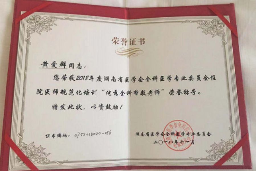 黄爱群荣获湖南省优秀全科带教教师称号 发布时间:2018-11-05 16:11 本文来源: 未知 分享到: 为保证我省全科医生培训质量,加快培养合格的全科人才。湖南省医学会全科医学专业委员会决定组织开展 “2018 年度湖南省优秀全科专业带教教师”推选活动。 经过推荐评选,我院全科医学科主任黄爱群主任医师专业知识丰富,带教方法灵活,积极组织各类教学活动,注重理论与临床实践相结合,获得住培医师及院领导、省内专家的肯定,荣获2018年度优秀全科带教教师称号。 扫一扫 手机端浏览