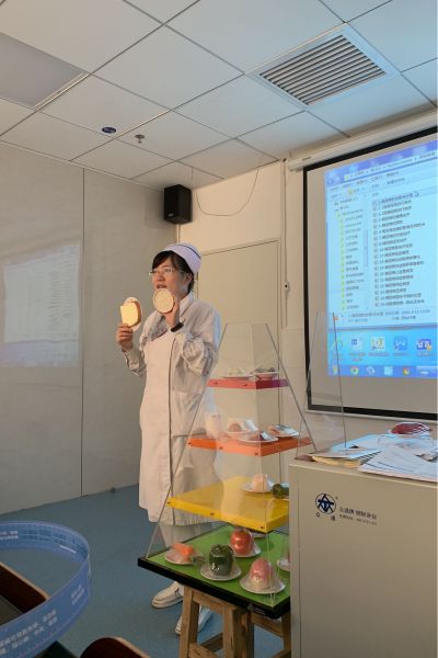培训课上,张倩护士长从糖尿病的五架马车说起,结合临床实例重点讲述饮食原则、交换份的使用、口服药误区、胰岛素注射标准、运动注意事项等内容。她还介绍了如何快速记忆胰岛素分类的小技巧,解决了护理人员对各类胰岛素分类及使用的困惑,通过讲解同时借助我院胰岛素管理工具盒,将我院的胰岛素管理做到了精细化,确保病人的用药安全。