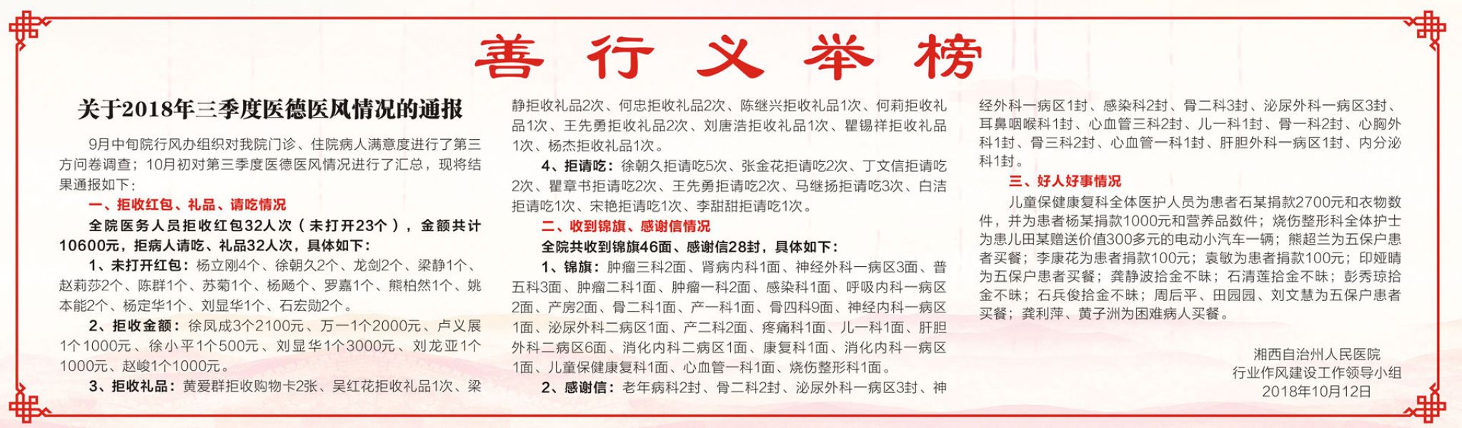 州人民医院第三季度善行义举榜-医院新闻-新闻中心-湘西土家族苗族自治州人民医院【官方网站】