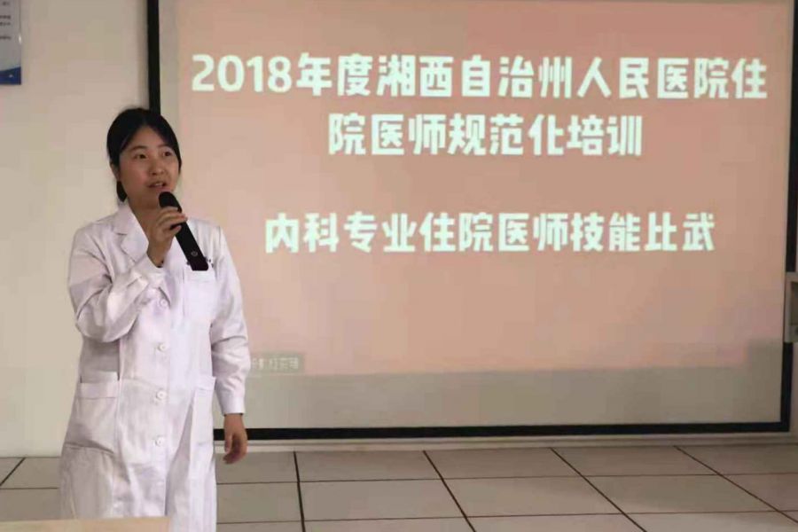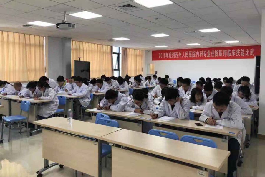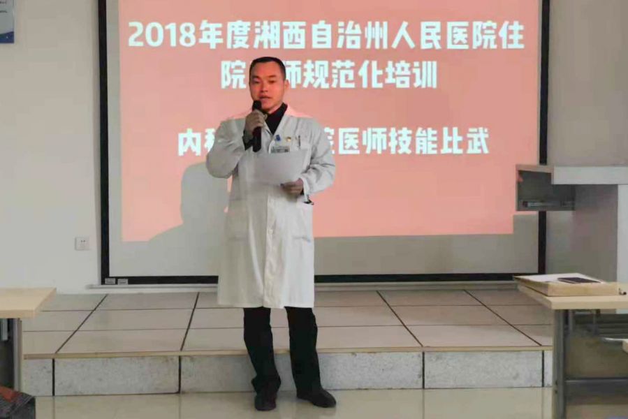 11月27日下午,州人民医院内科专业开展了轰轰烈烈的住院医师临床技能大比武(病例分析与病史询问),大内科基地全体62名学员参加比武。活动由科教科长魏仁国主持。