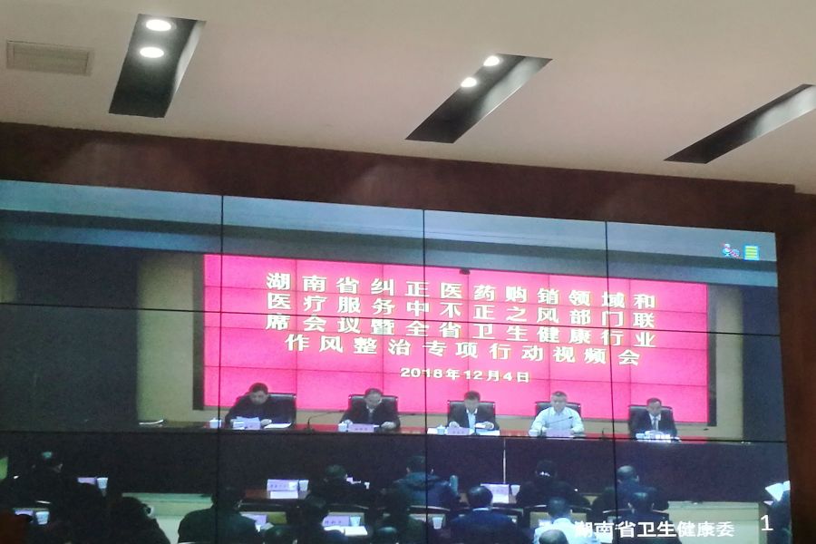 为深入贯彻落实纠正医药购销领域和医疗服务中不正之风部级联席会议第二十次会议视频会和国家卫生健康行业作风整治工作视频会精神,12月4日下午,湖南省卫生健康委员会组织召开了湖南省纠正医药购销领域和医疗服务中不正之风部门联席会议暨全省卫生健康行业作风整治专项行动视频会。会议在省卫生健康委员会机关设立了主会场,在各市州卫生计生委设立了分会场。副院长向平和医务科、监察室、行风办负责人参会。