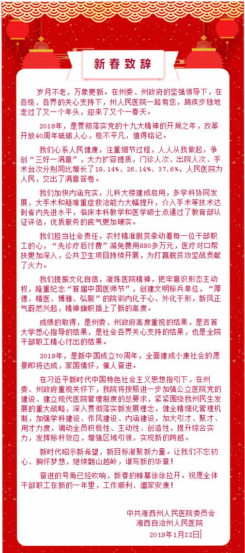 新春致辞-医院新闻-新闻中心-湘西土家族苗族自治州人民医院【官方网站】