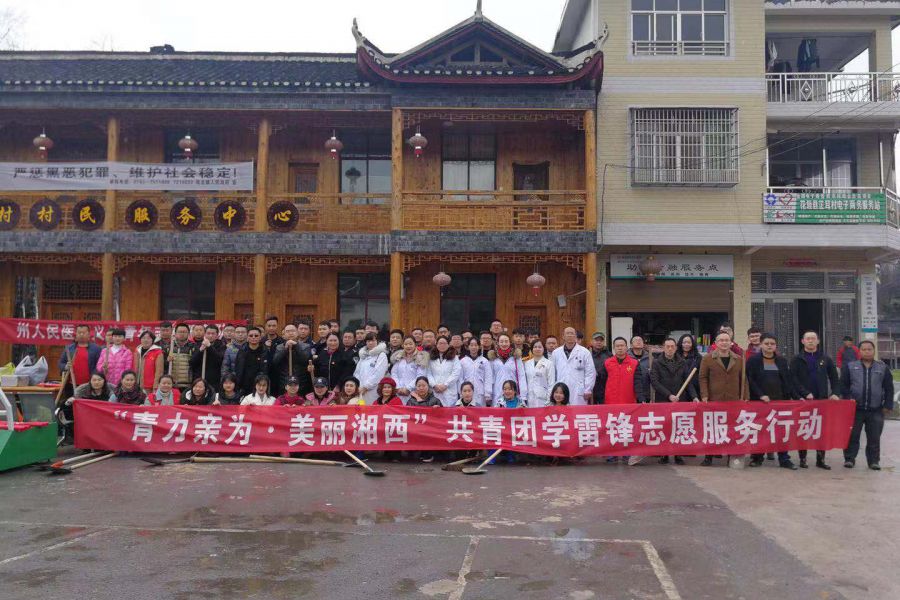 “3.5”是学雷锋纪念日,为进一步弘扬雷锋精神,积极学习和践行社会主义核心价值观,带头弘扬青春正能量,助力美丽湘西建设,院团委应州委组织部、团州委邀请组织全院10余名青年在花垣县双龙镇芷耳村开展“青力亲为•美丽乡村” ——“3•5”学雷锋志愿服务——为村民义诊、义务植树。