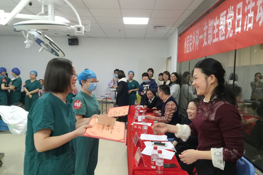 树岗位新风,展天使风采。为提高个人、科室团队抢救水平及多学科合作能力,3月16日,外科一支部在临床技能中心开展主题党日活动——“产后出血应急预案演练”比武。参赛的队伍有产一科、产二科、产房、手术室、妇一科、妇二科。陕西省妇保院产科专家曹引丽主任,我院林彤主任、田志海主任、李建霞主任、杨飏主任、程秋蓉主任、护士长田丽平和毛英担任比武评委。