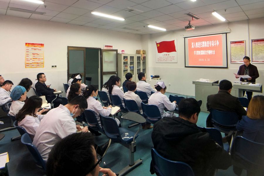 为认真落实全州扫黑除恶会议精神,3月25日,门诊党支部召开纵深推进扫黑除恶专项斗争专题大会。