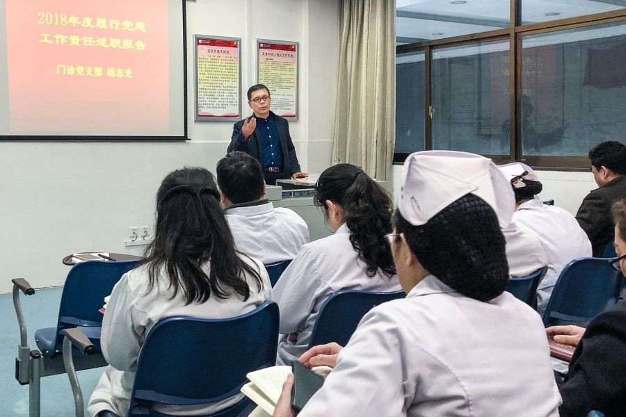 支部书记首先进行支部大会述职,述职完毕全体党员对支部书记述职进行测评打分。接着,每一位支委成员就2018年度个人存在的主要问题进行自我剖析,支委之间及支部党员同志对各位支委提出了诚恳的批评、意见和建议。支部大会前,门诊支部各党小组召开了小组组织生活会,各位党员在小组生活会上开展了严肃认真的批评和自我批评,各小组长在支部大会上报告了本小组党员组织生活会情况。到会的联系院领导向平副院长对支部组织生活会进行了点评。支部组织生活严格按要求取得了实实在在的效果。