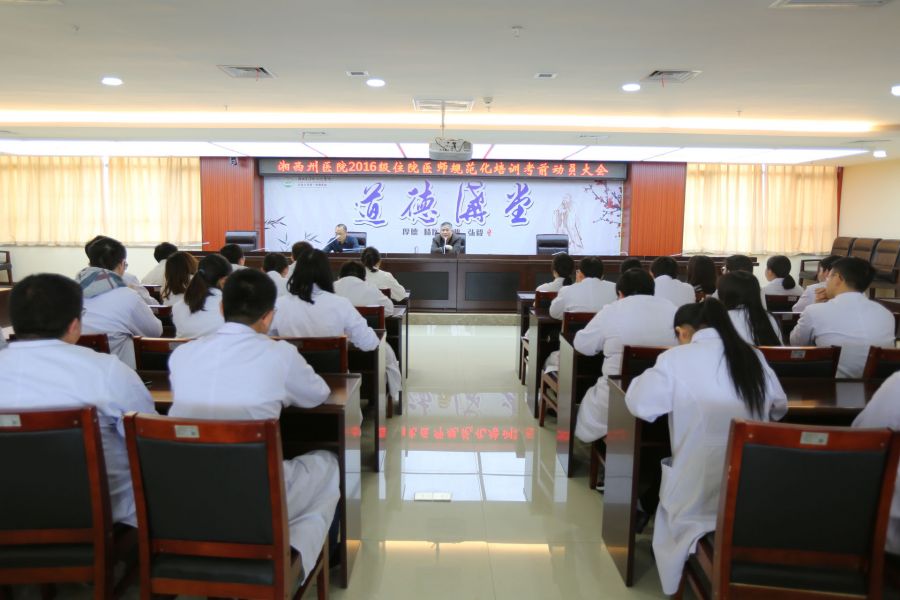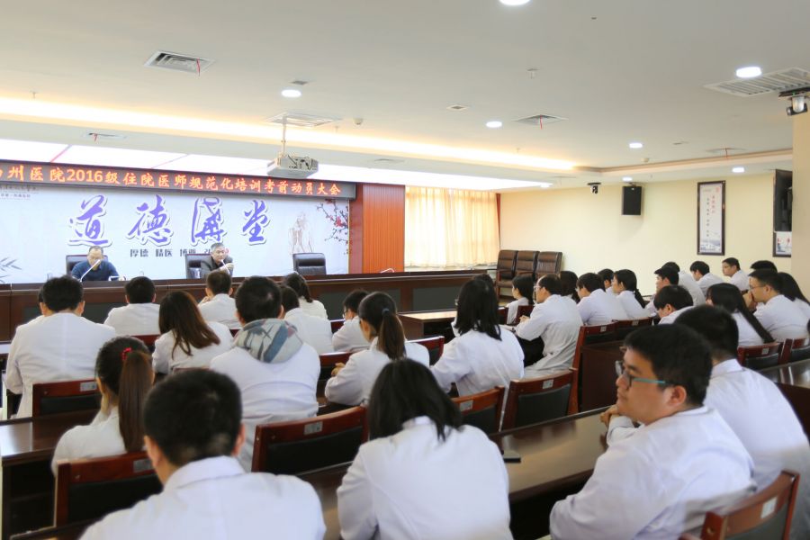为调动住培医师的积极性,提高大家对结业考核的认识,3月29日上午,科教科组织召开了2016级住院医师规范化培训结业考核考前动员会。住院医师规范化培训结业考核是住院医师职业生涯中的一次重要考核,考前动员是一次统筹安排,更是一次激励。我院2016级住院医师规范化培训医师90名,其中80%是社会、外单位住院医师和专硕并轨研究生。院党委书记彭剑涛出席会议并讲话,副院长黄纯海主持本次会议。