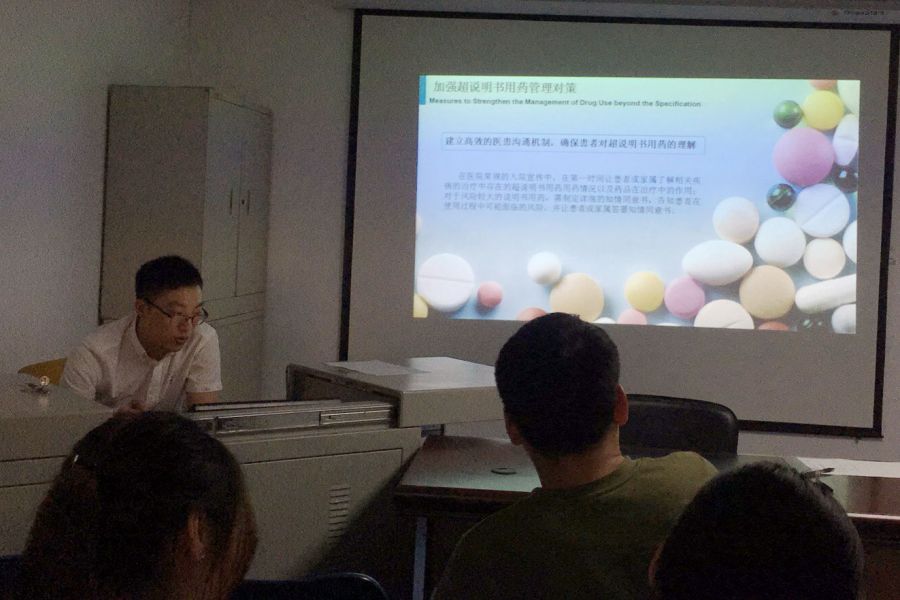 这次讲课是由儿科药房王善奇主讲,讲课的题目是《超说明书用药的浅析》。王善奇围绕超说明书用药现状和认识误区,超说明书用药原因,超说明书用药实例,加强超说明书用药管理对策等四个方面进行了讲课。