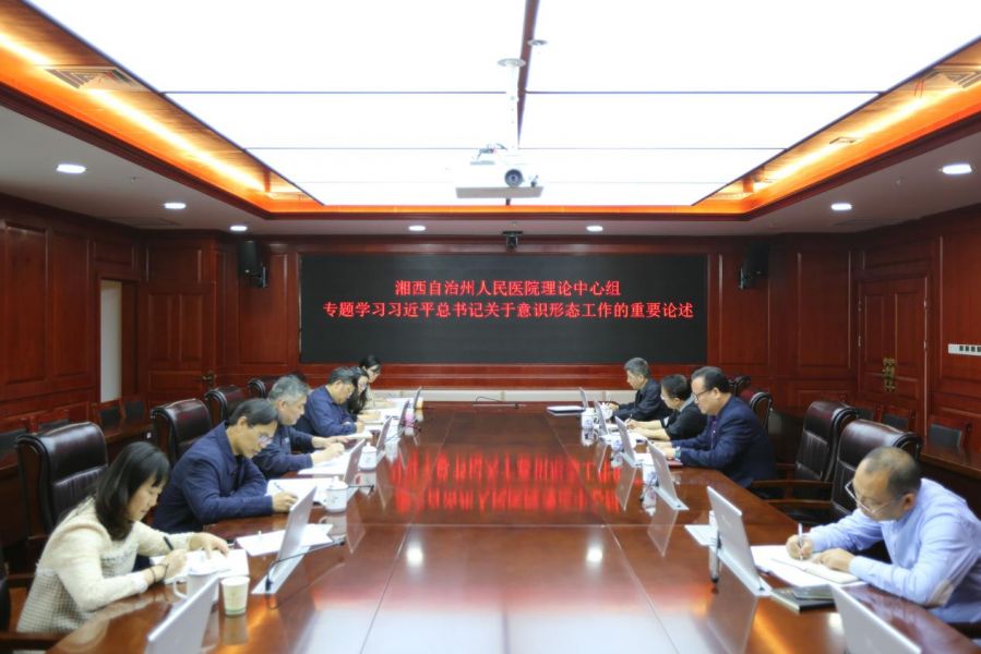 4月22日,州人民医院党委理论学习中心组在内科综合楼23楼一会议举行专题学习习近平总书记关于意识形态工作的重要论述。医院党委理论学习中心组成员参加学习。