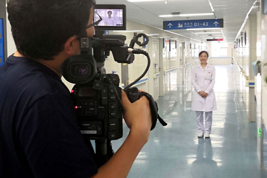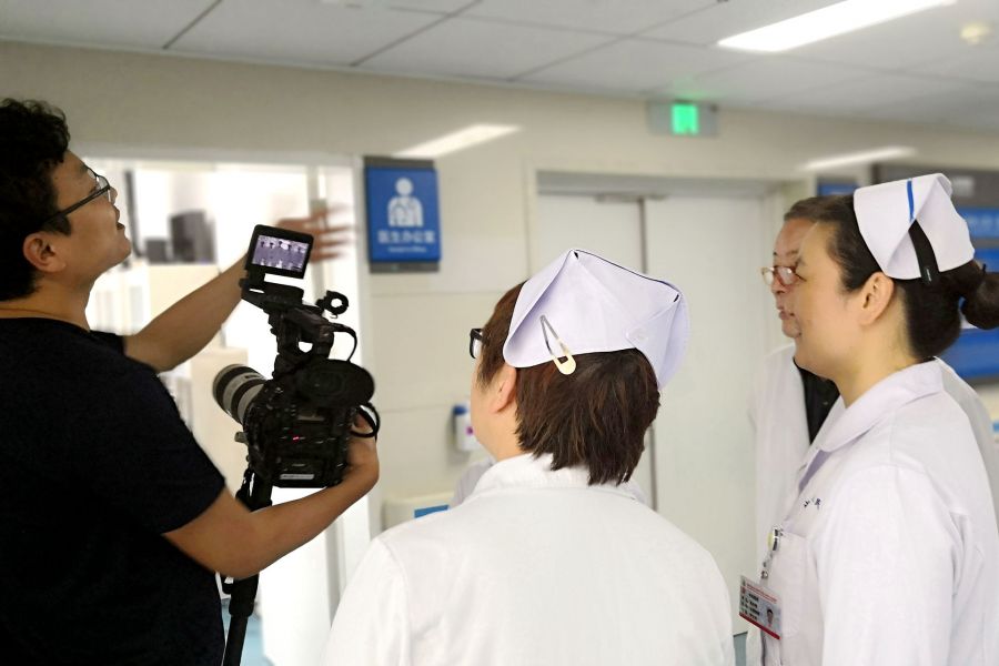 “我和我的祖国”快闪摄制组来我院拍摄工作场景