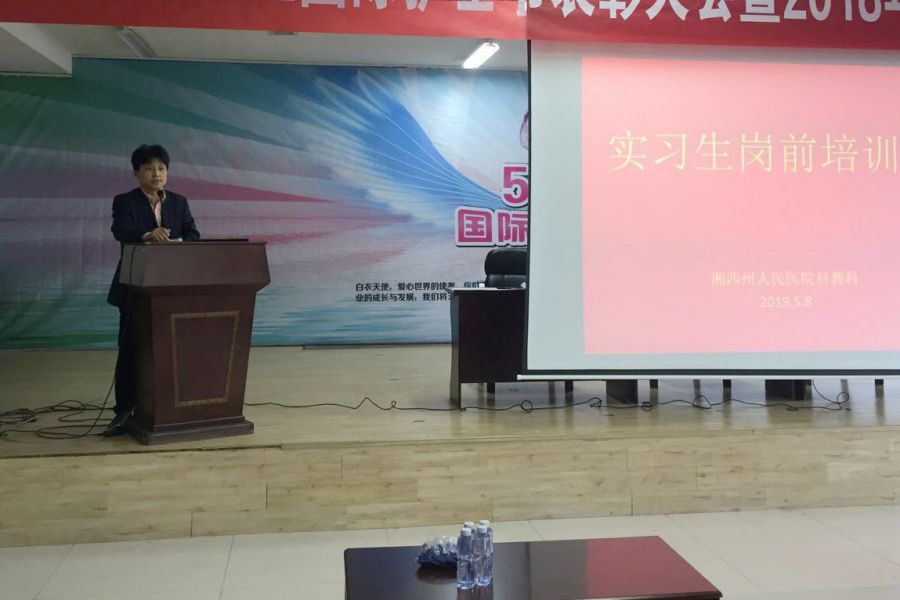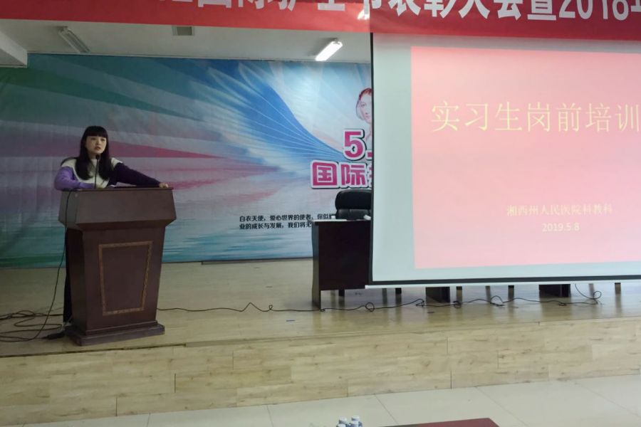 5月8日上午,科教科在食堂四楼大会议室举行了今年第一批次实习生岗前培训会,来自多所医学院校的护理、影像、检验、药学专业的171名实习生参加了培训。