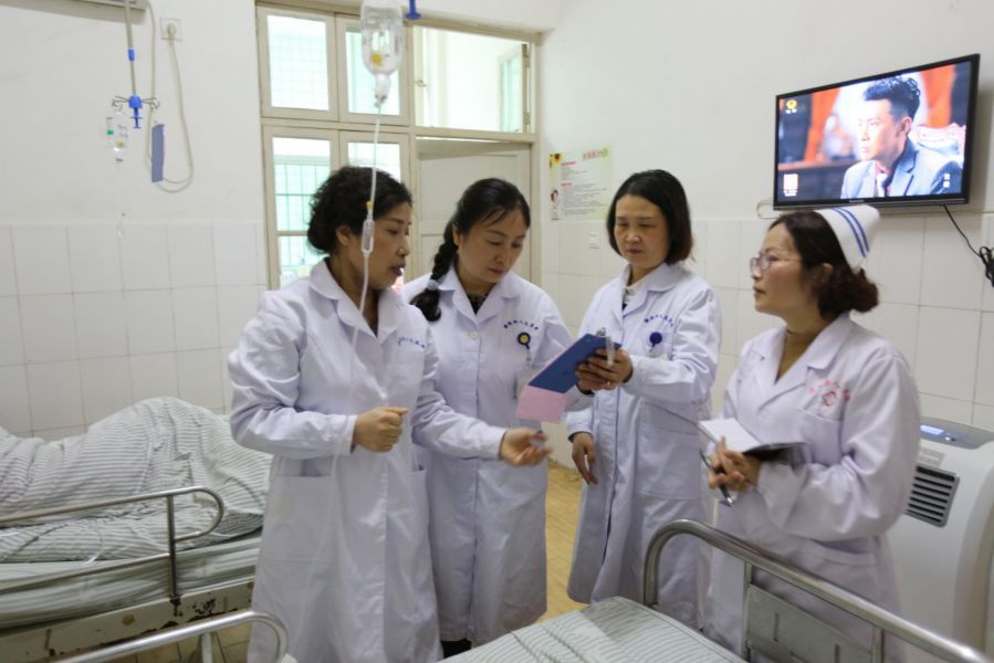 内科党总支为深入推进健康扶贫措施落地,提高对口帮扶精准成效,5月14日,组织了16人的护理专家团队到我院医疗帮扶单位——古丈县人民医院,开展对口扶贫进基层医院主题党日活动。