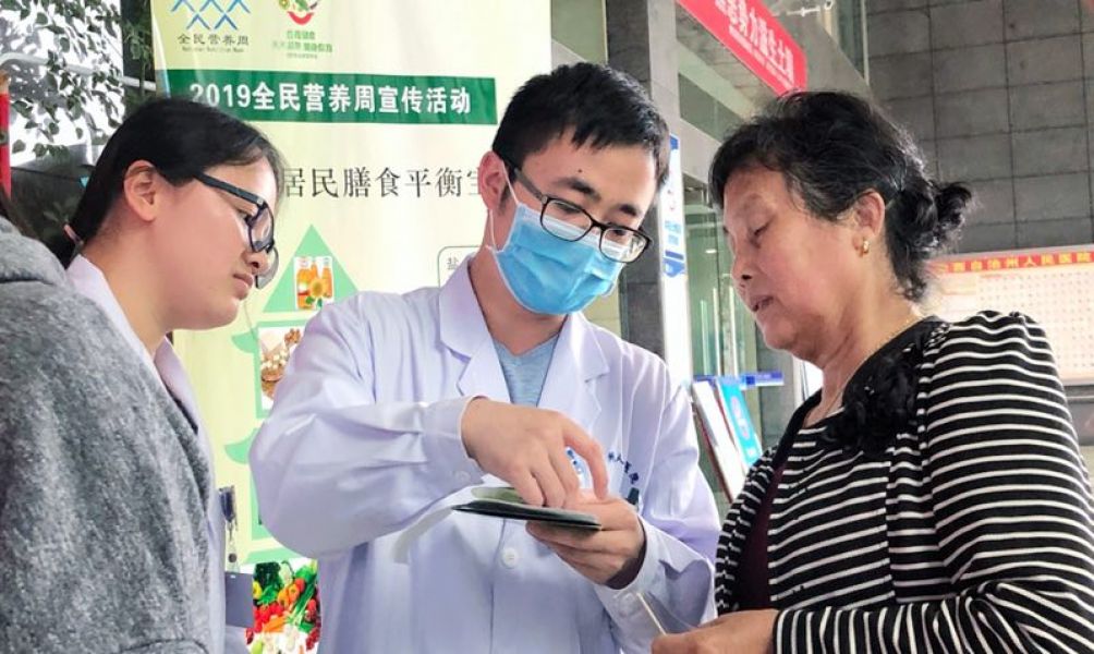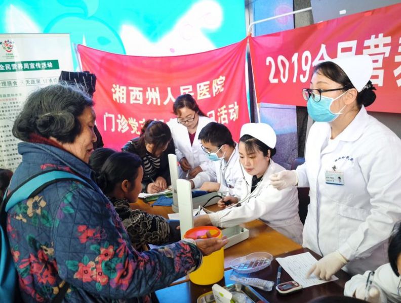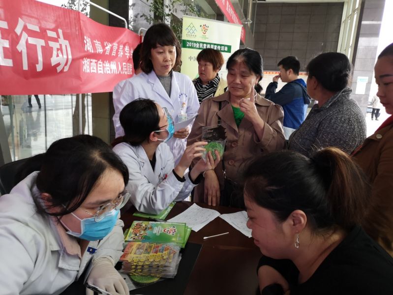 2019年全民营养周口号“健康中国 营养先行”,活动时间是5月12至18日,活动主题为“合理膳食、天天蔬果、健康你我”。在第五个全民营养周来临之际,5月15日下午,我院营养科与门诊党支部联合在门诊大厅进行营养周宣传活动,为候诊病人及家属进行血压、血糖检测,并赠送盐勺、中国居民膳食宝塔冰箱贴及“合理膳食、天天蔬果、健康你我”宣传册页。通过活动集中宣传“蔬菜水果”科学信息和健康益处,以“吃动平衡行动”和“合理膳食”为核心,围绕好食物,好营养,预防慢性病等多个方面进行健康宣教。