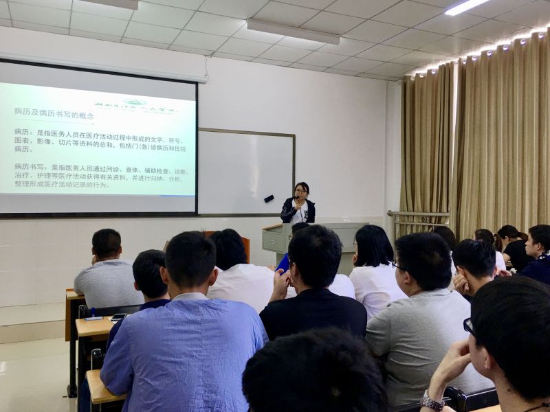 黄纯海首先代表医院对同学们的到来表示热烈欢迎,并简要介绍了医院的基本情况,强调了工作、生活安全问题,进行了劳动纪律教育和职业作风建设教育,要求同学们作为成年人必须增强法律法规意识。黄纯海还就临床实习与考研的关系进行了讲解,强调两者之间是相辅相成的关系。贾浩、王金兰、龙思华分别就卫生法律法规、医院感染控制和病历书写规范等相关知识进行了宣教。魏仁国讲解了我院实习生管理规定以及实习生职责,再次强调同学们作为成年人必须增强法律法规意识。陈艳详实的解说了工作、生活上对实习生的具体要求,对轮科学习作了具体的安排。