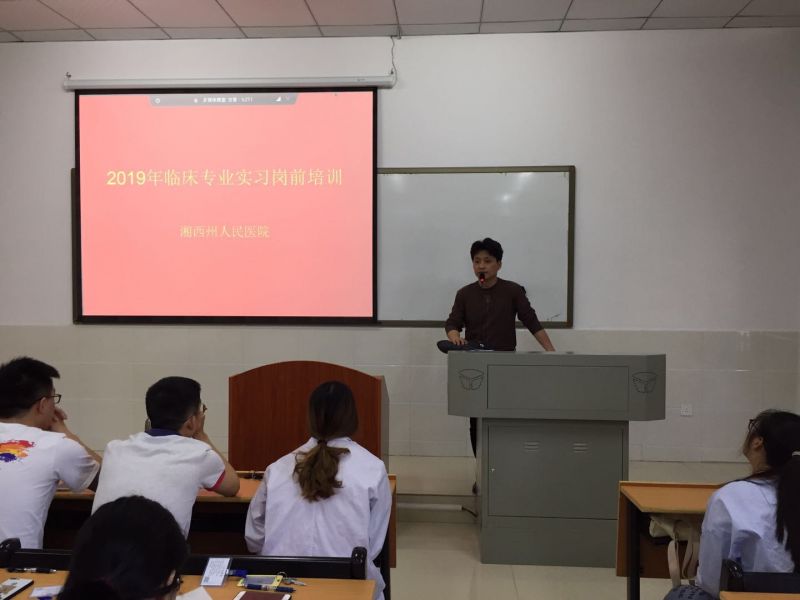 5月23日上午,科教科在临床教学综合楼211教室举行了今年吉首大学临床专业实习生岗前培训会,来自吉首大学2015级临床专业76名同学参加了培训。