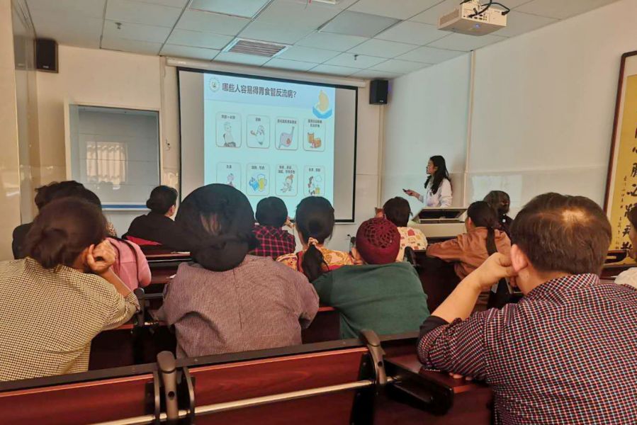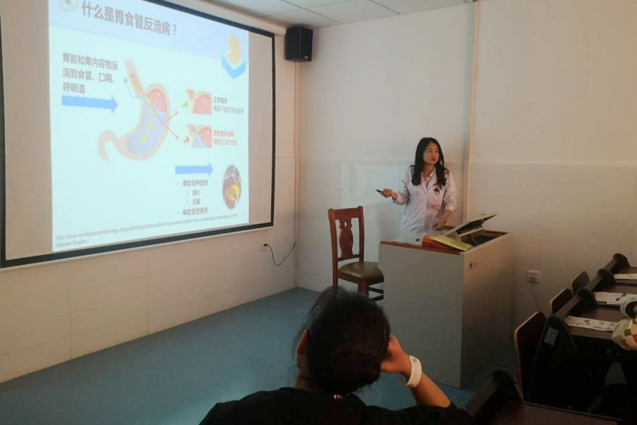 5月22日至31日,消化内科在科室示教室举行以“胃爱一起,胃你而来”为主题的消化内科健康大讲堂。22日,消化内科向群副主任为大家讲解了胃食管反流病的自我管理,得到了患者及其家属的积极响应。课后大家积极提问,对胃食管反流病的常规治疗及预防有了基本的了解和认识,增强了大家对此病的自我管理意识。接下来,消化内科还将为患者精心准备一系列讲座,消化内科副主任医师罗荣、王娟等将走上讲台,带来“HP--胃癌背后的‘元凶’--幽门螺旋杆菌”、“长期服用非甾体类抗炎药患者的消化道保卫战”等健康科普。