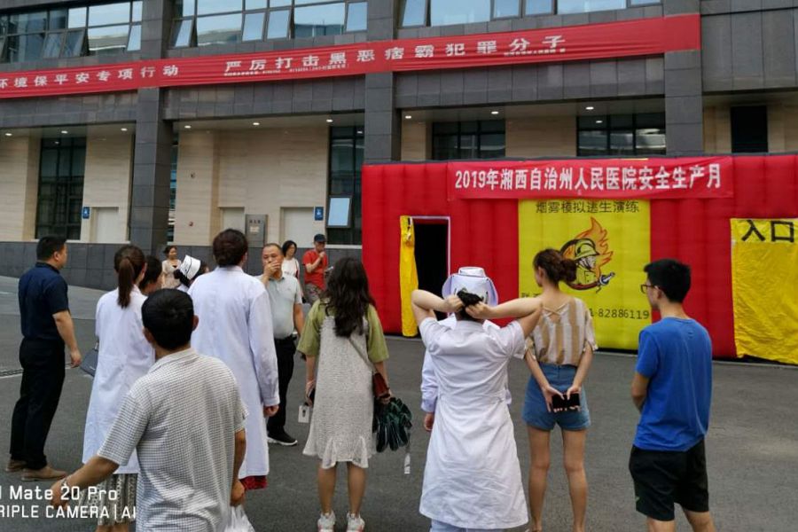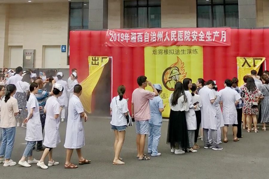 6月4日至5日,州人民医院开展消防模拟逃生迷宫演习活动。本次活动系州医院2019年安全生产月开展的系列活动之一,约400名职工、实习生、见习生及100余病人及家属参加了本次活动。活动现场的各种道具模拟了火灾发生时的烟、火、警报等场景,让参与者能更加真实的体验如何逃生,提高他们的消防技能。
